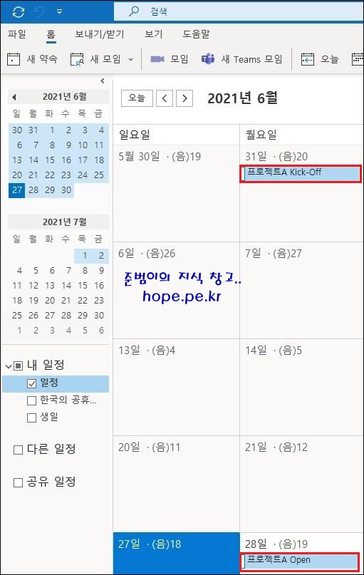 cf) Outlook을 많이 사용하신분들은 익숙한 방법일 수 있습니다.