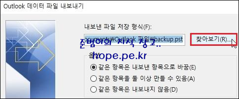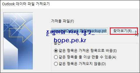 Outlook 데이터 파일 가져오기 화면에서, '찾아보기' 를 클릭 합니다.