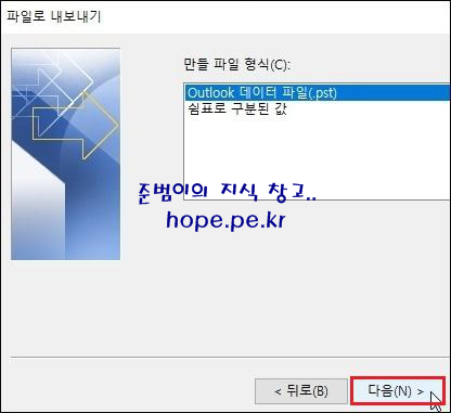Outlook 데이터 파일 내보내기 화면에서, 내보낼 폴더를 '전체 사서함' 선택 후 '다음' 을 클릭 합니다.