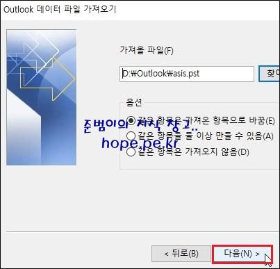 파일 가져오기 화면에서, '다음' 을 클릭 합니다.