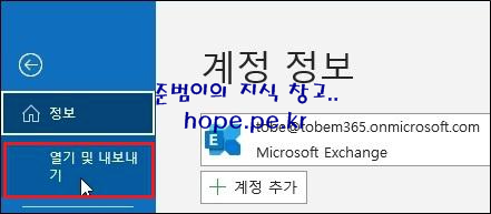 계정 정보 화면에서, '열기 및 내보내기' 를 클릭 합니다.