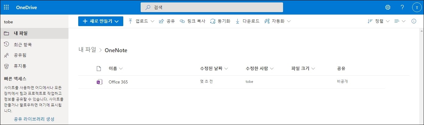 Cf) OneDrive 에도 OneNote 파일이 정상 생성되었습니다.