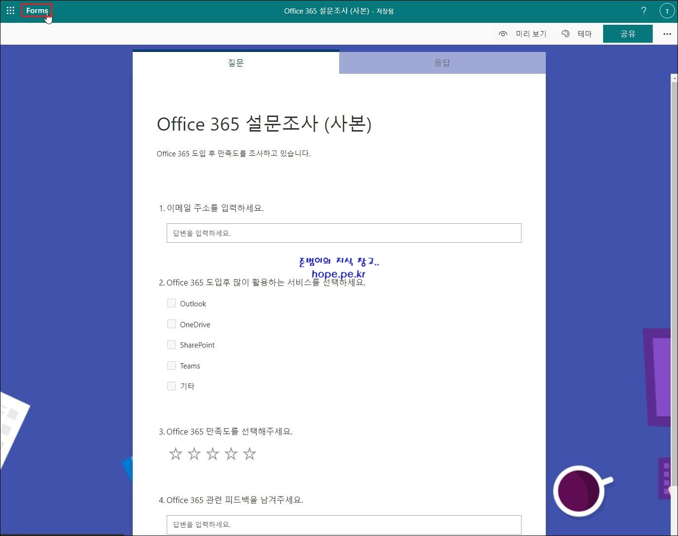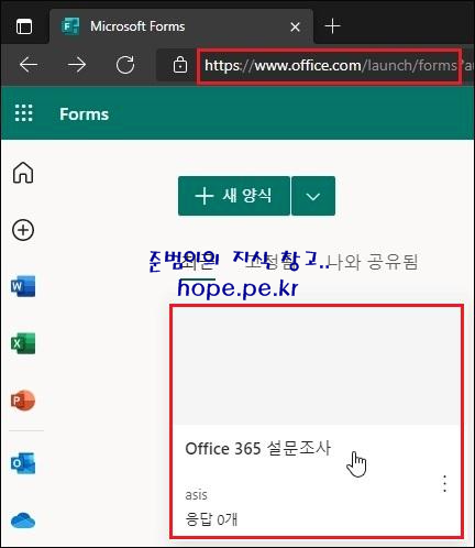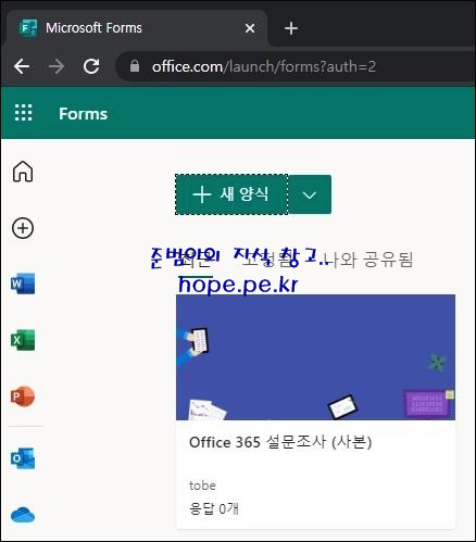Forms 서비스(office.com/launch/forms) 페이지에서, 해당 템플릿이 정상적으로 마이그레이션이 되었음을 확인 합니다.