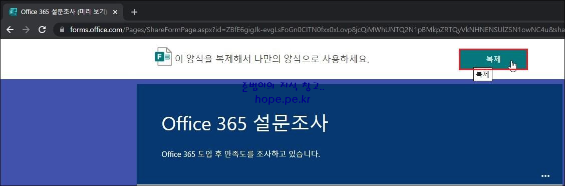 Forms 서비스(office.com/launch/forms) 페이지에서, 해당 템플릿이 정상적으로 마이그레이션이 되었음을 확인 합니다.