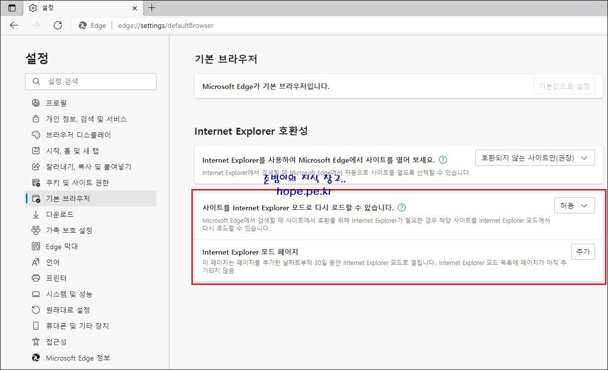 | Microsoft Edge 브라우저에서 Internet Explorer 모드 사용 (0) | 2021.06.12 |