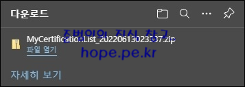열기 창에서, '다운로드 한 zip 파일' 선택 후 '열기' 를 클릭 합니다.
