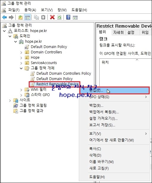 새로 만든 그룹 정책 에서, 우클릭 후 '편집' 을 클릭 합니다.