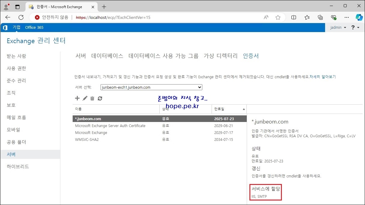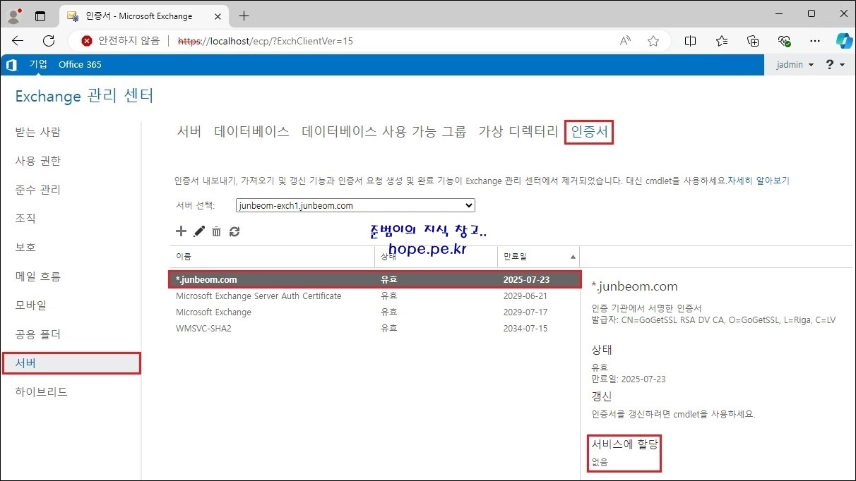 이번 포스팅에서는 "Exchange Server 2019 인증서에 서비스 할당" 방법에 대해 알아보겠습니다.