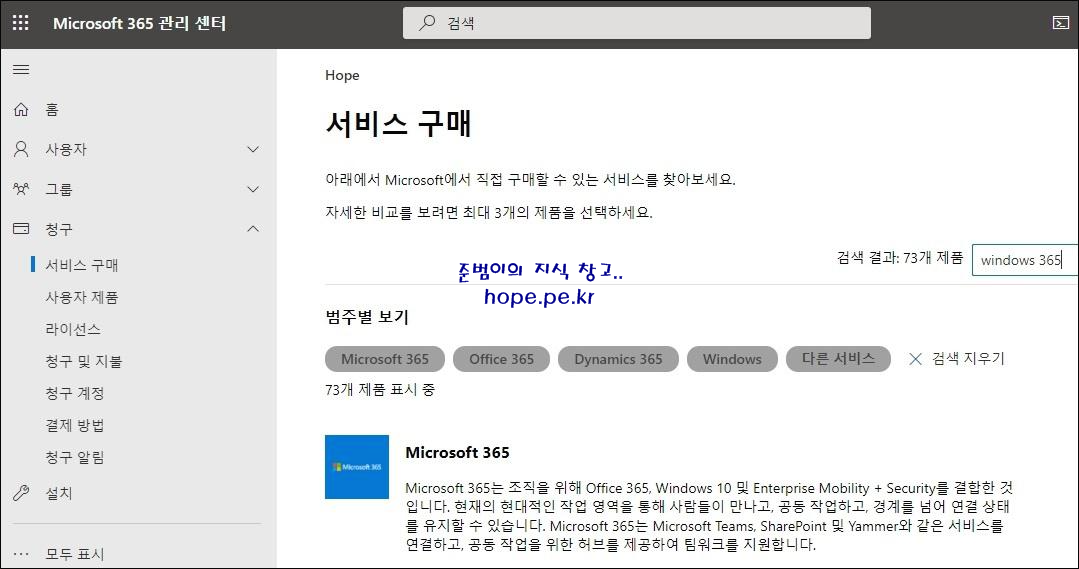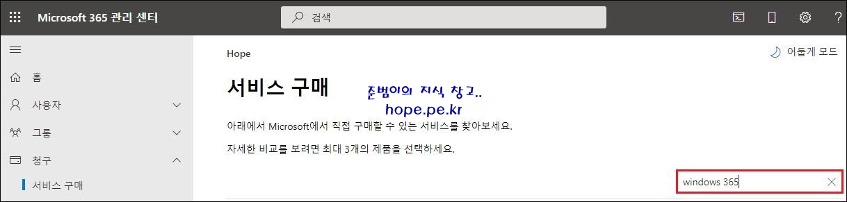 서비스 구매 화면에서, 'Windows 365' 로 검색해봅니다.