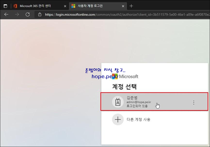 계정 선택 화면에서, '로그인되어 있는 계정' 을 클릭 합니다.