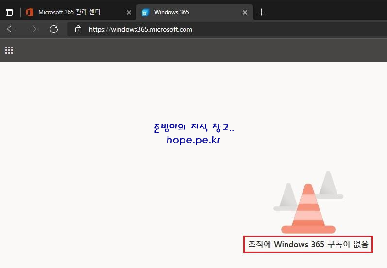 '조직에 Windows 365 구독이 없음' 화면이 발생합니다.