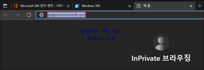 '새 탭' 실행후 'Microsoft Endpoint Manager 관리 센터 사이트(endpoint.microsoft.com)' 에 접속합니다.