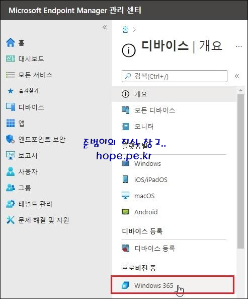 디바이스 화면에서, 'Windows 365' 를 클릭합니다.