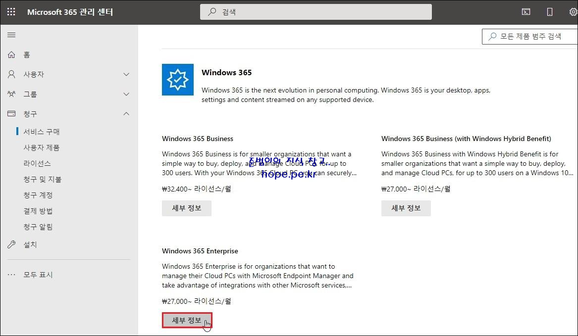 'Windows 365 Enterprise' 의 '세부 정보' 를 클릭 합니다.
