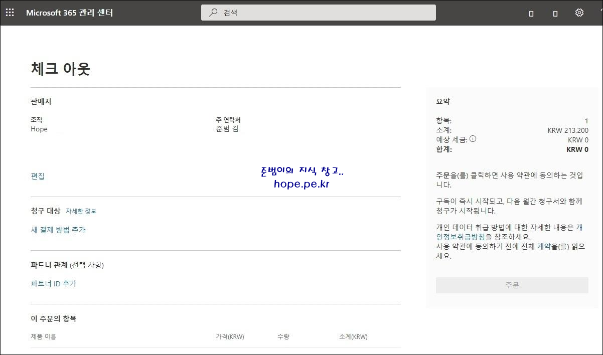 아마도 대부분의 기업 담당자분들께서는 Microsoft 365 및 Office 365 구입시 Microsoft 365 관리 센터에서 직접 구입 절차를 진행하기 보다는 Microsoft 파트너사 영업대표를 통해 구입 진행을 하셨을겁니다.