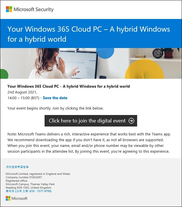 어제 저녁 10시에 'Windows 365 (Your Windows 365 Cloud PC - A hybrid Windows for a hybrid world)' 관련 digital event가 진행되었습니다.