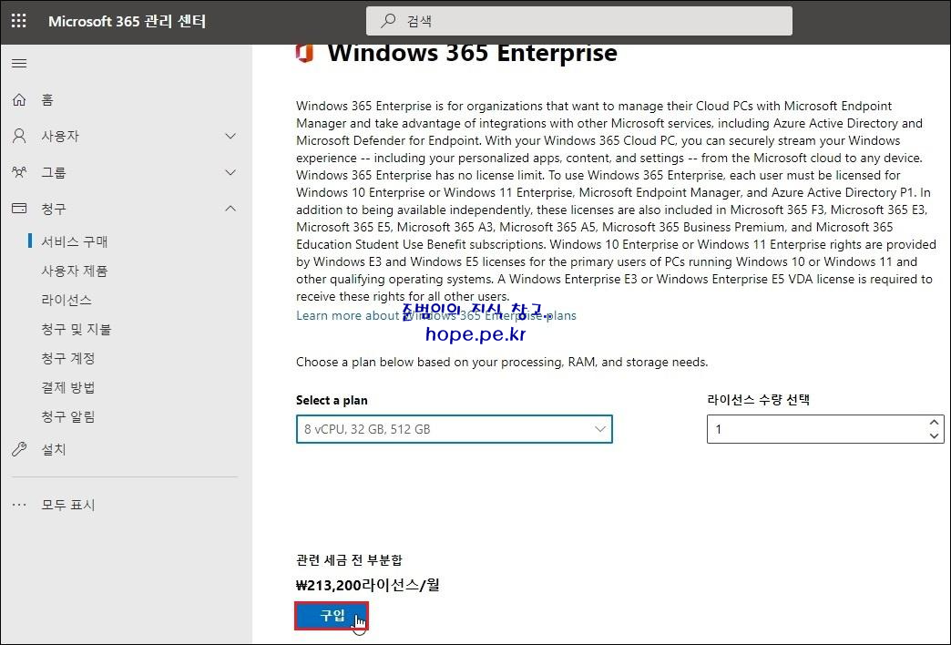 Windows 365 역시 Microsoft 파트너사 영업대표를 통해 구입 진행을 하시면 편하지 않을까 싶습니다.