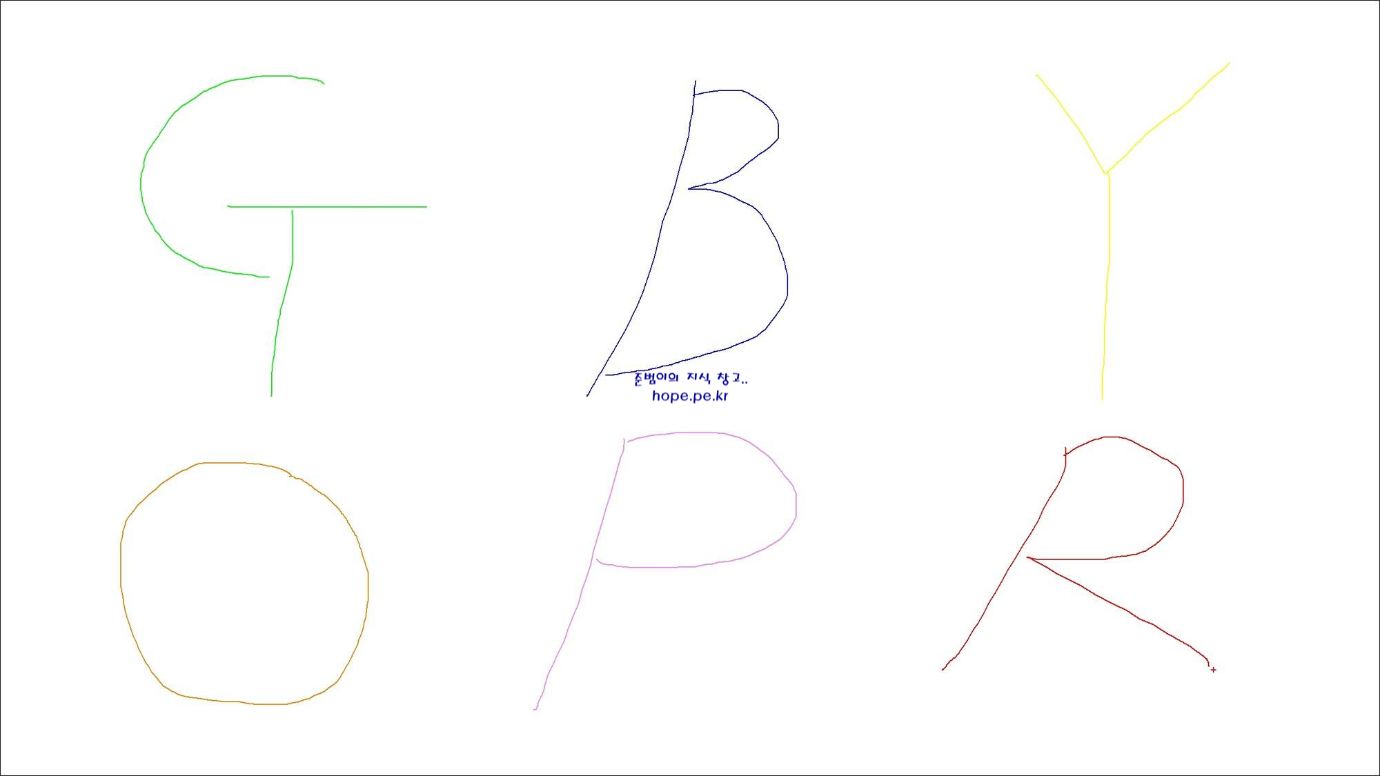 G키는 Green 녹색, B키는 Blue 파란색, Y키는 Yellow 노란색, O키는 Orange 오렌지색, P키는 Pink 핑크색, R키는 Red 빨간색 입니다.