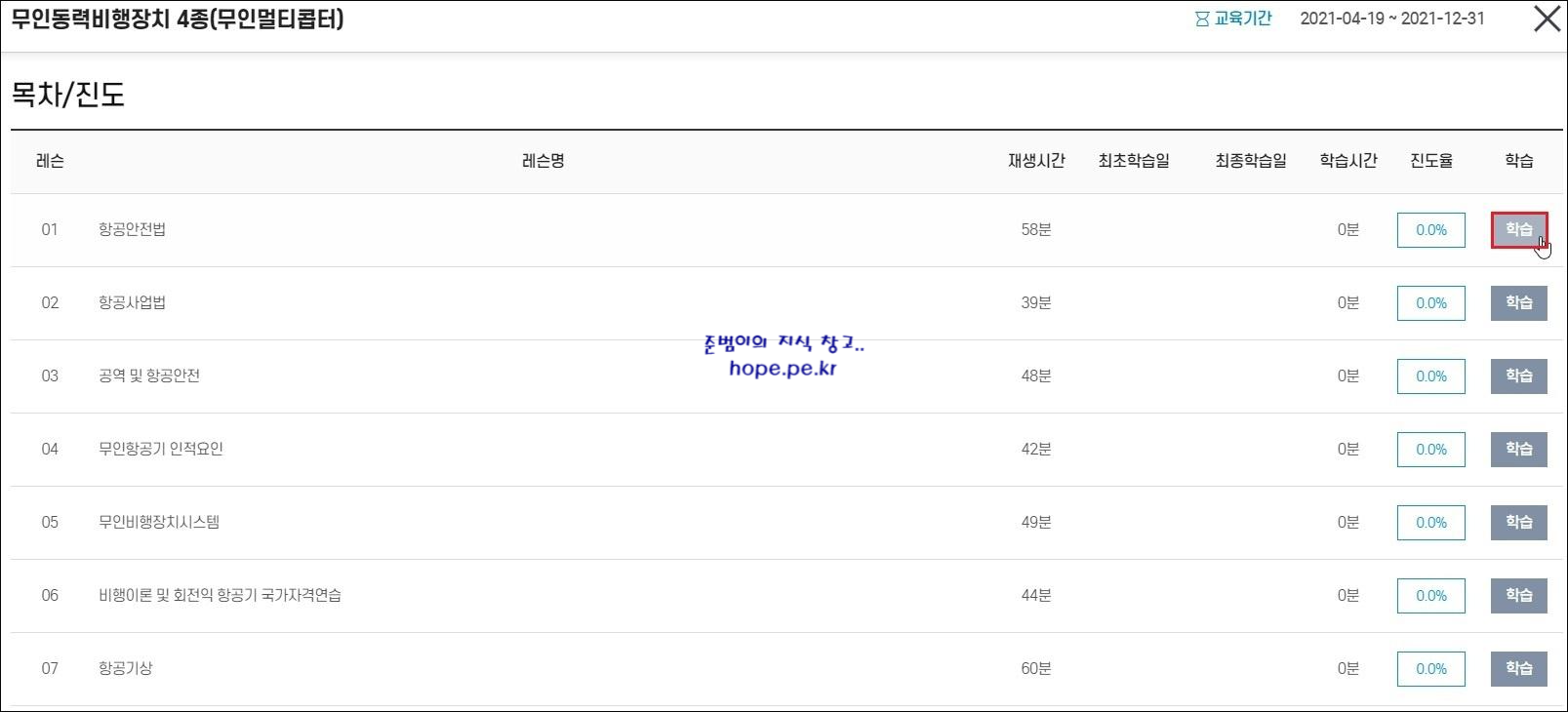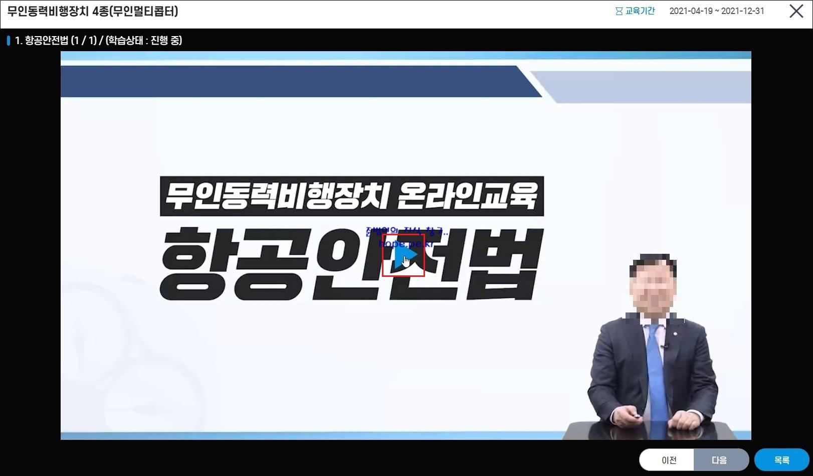 재생 버튼을 클릭하여 교육 수강을 진행 합니다.
