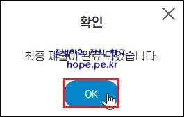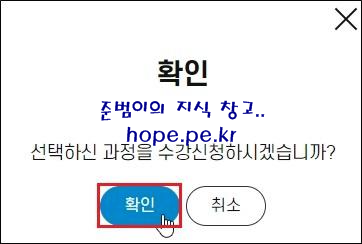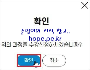 동일한 방법으로 7차시까지 교육을 모두 완료하면 다음 확인창이 발생 합니다. '확인' 을 클릭 합니다.