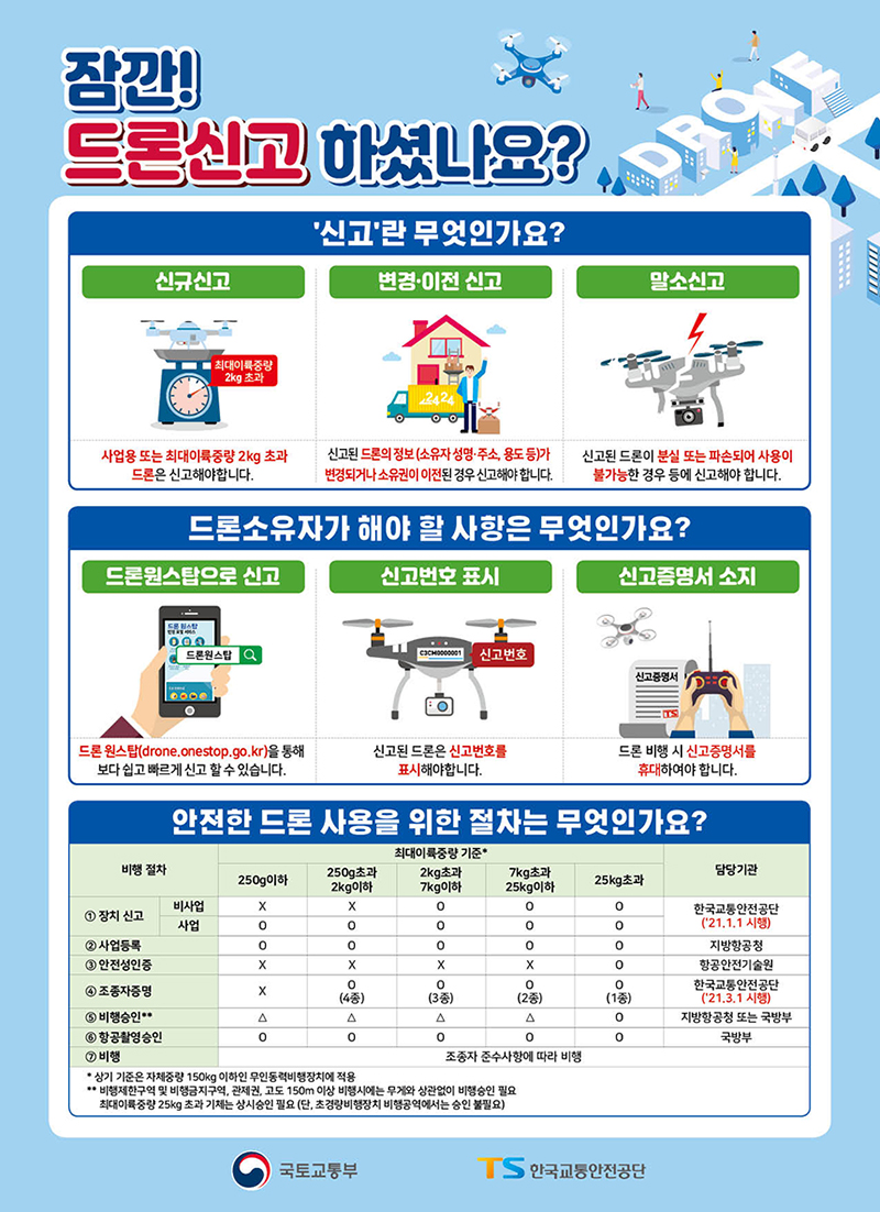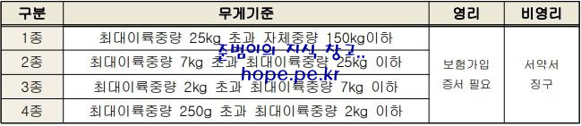 2) 이전에는 취미형 드론은 특별한 자격 없이 비행이 가능했지만 2021년03월01일부터는 다음 기준으로 기체가 분류되고