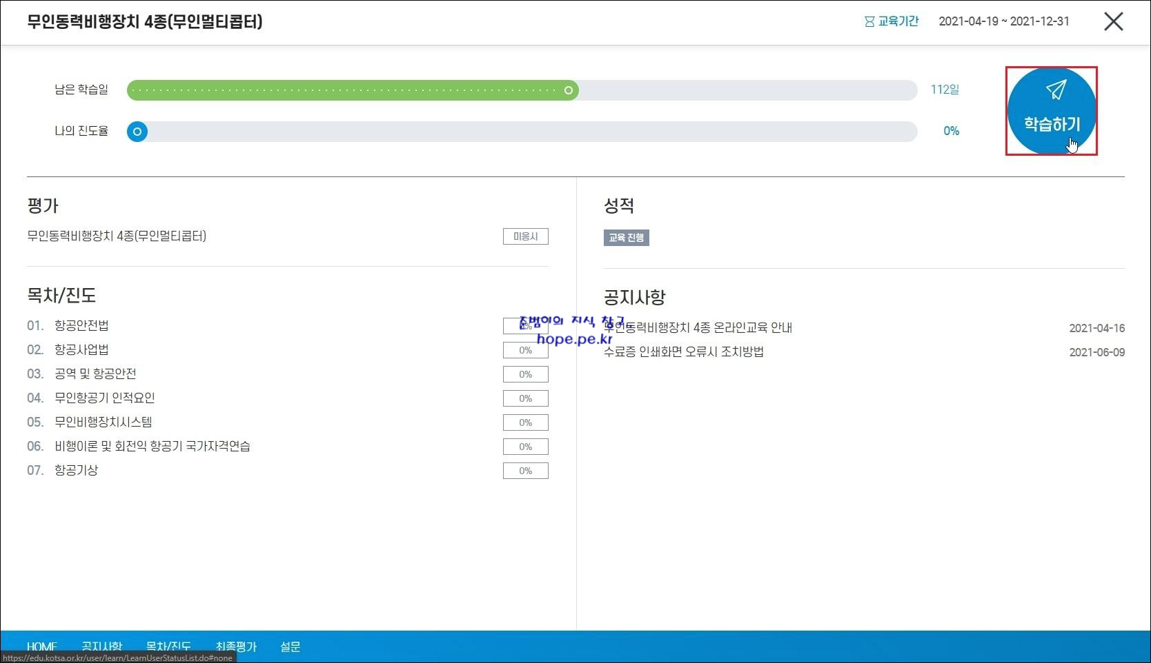 자세한 내용은 다음 항공교육훈련포털 사이트 내용을 참고 부탁드립니다.