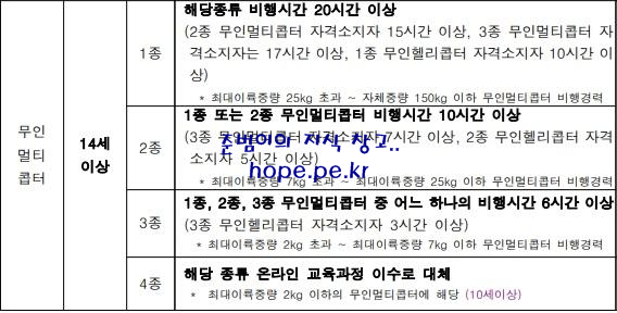 3) 다음 기준으로 무인멀티콥터 조종자 응시자격 확인후 자격증을 소지해야 합니다.