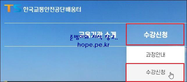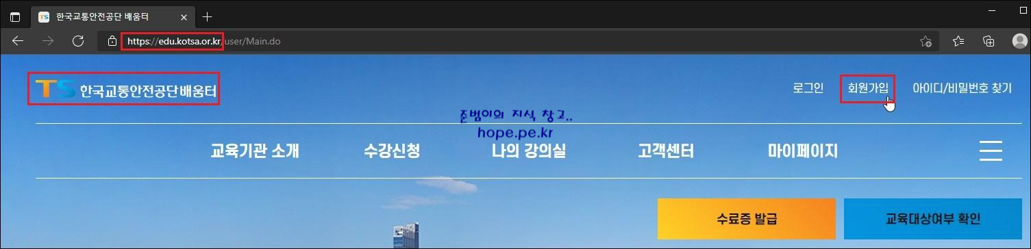 '한국교통안전공단배움터 (https://edu.kotsa.or.kr)' 사이트에 접속 후 '회원가입' 을 합니다.