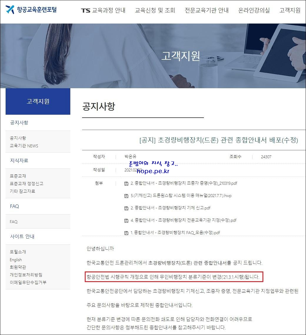 1) 2021년03월01일 항공안전법 시행규칙 개정으로 인해 무인비행장치 분류기준이 변경 시행