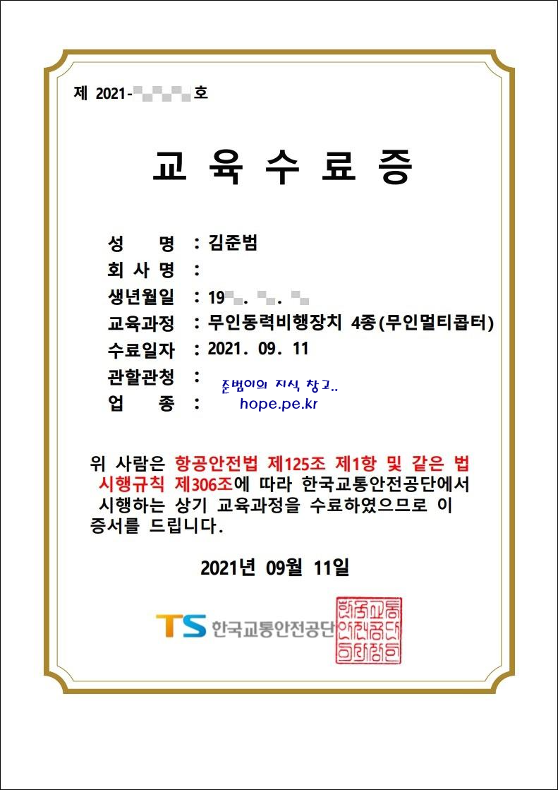 이상으로 "드론 자격증 취득 - 무인동력비행장치 4종(무인멀티콥터)" 방법에 대해 알아보았습니다.