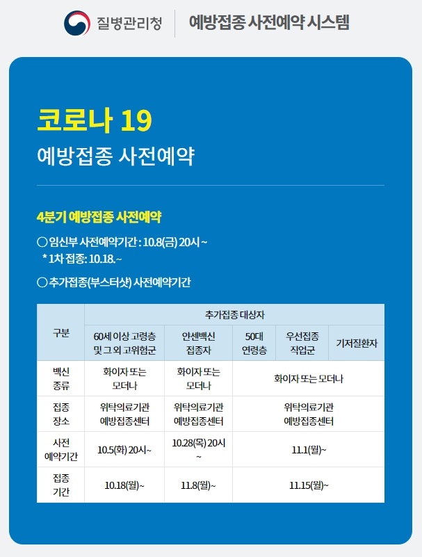 '질병관리청 | 예방접종 사전예약 시스템' 에 접속후 예약을 완료 했습니다.