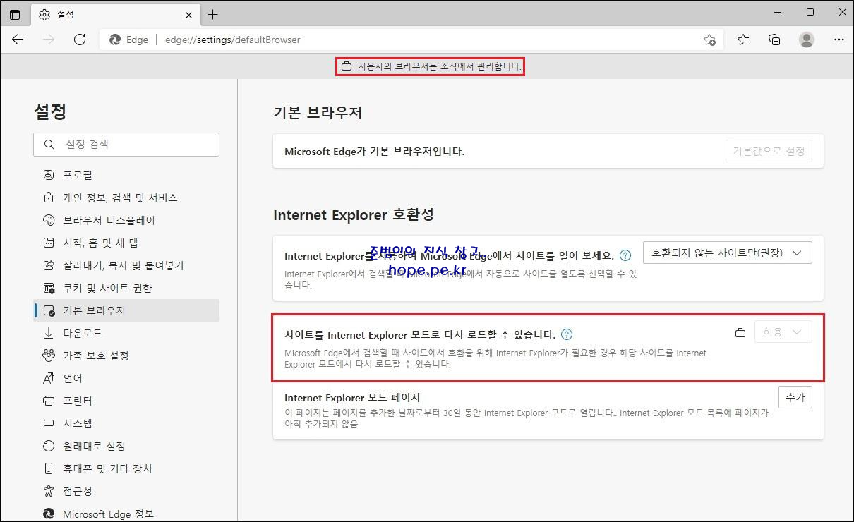 Microsoft Edge 브라우저에서 Internet Explorer 모드 사용