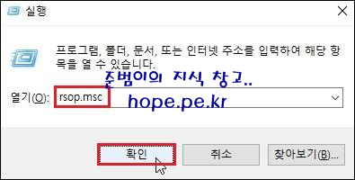 빠른 정책 적용을 위해 클라이언트 재부팅후 실행 창(Windows Key + R Key)에서 'rsop.msc' 입력후 '확인' 을 클릭 합니다.
