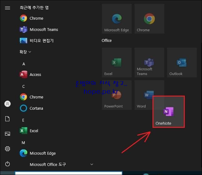 특정 앱을 '시작 화면에 고정' 하면, 가장 하단의 (그룹 이름이 없는) 새 그룹에 첫 아이콘으로 고정 됩니다.