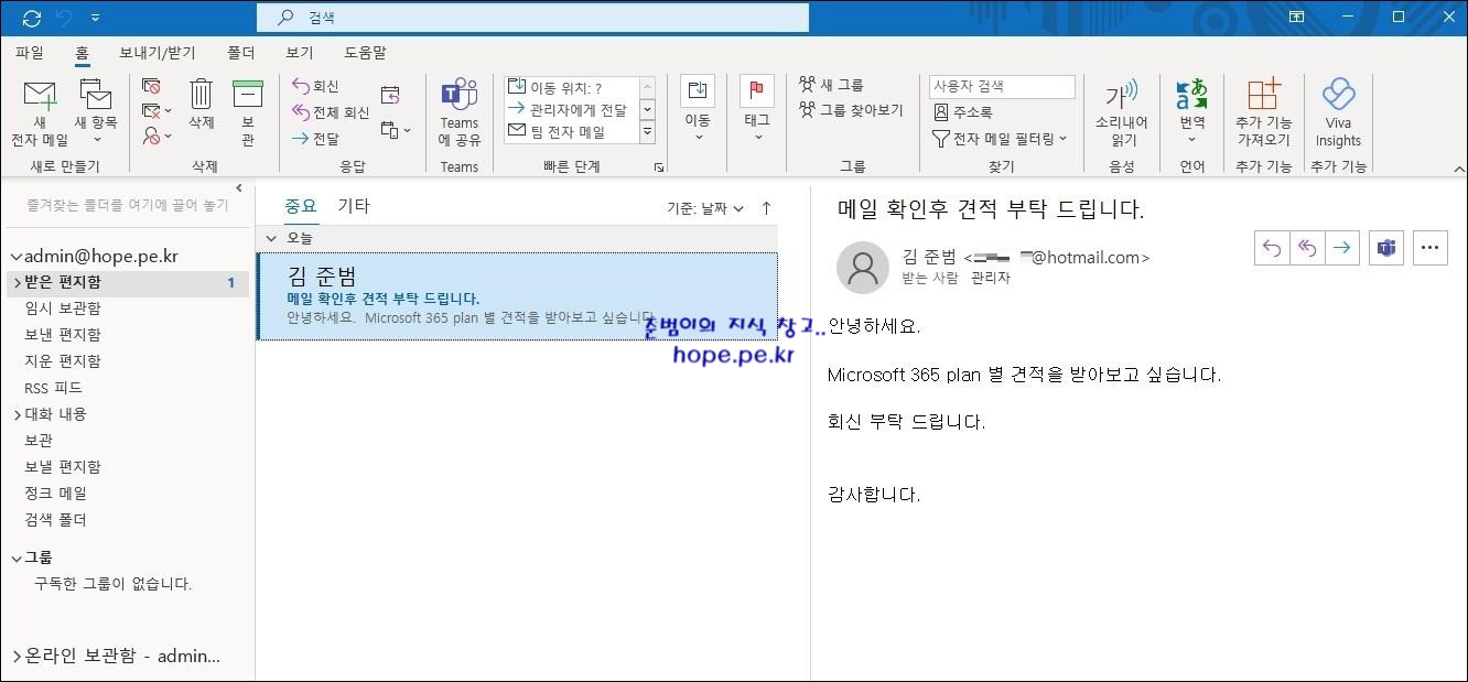 어제 제가 운영하는 YouTube 채널의 Outlook 관련 영상에 다음과 같은 댓글이 남겨졌습니다.