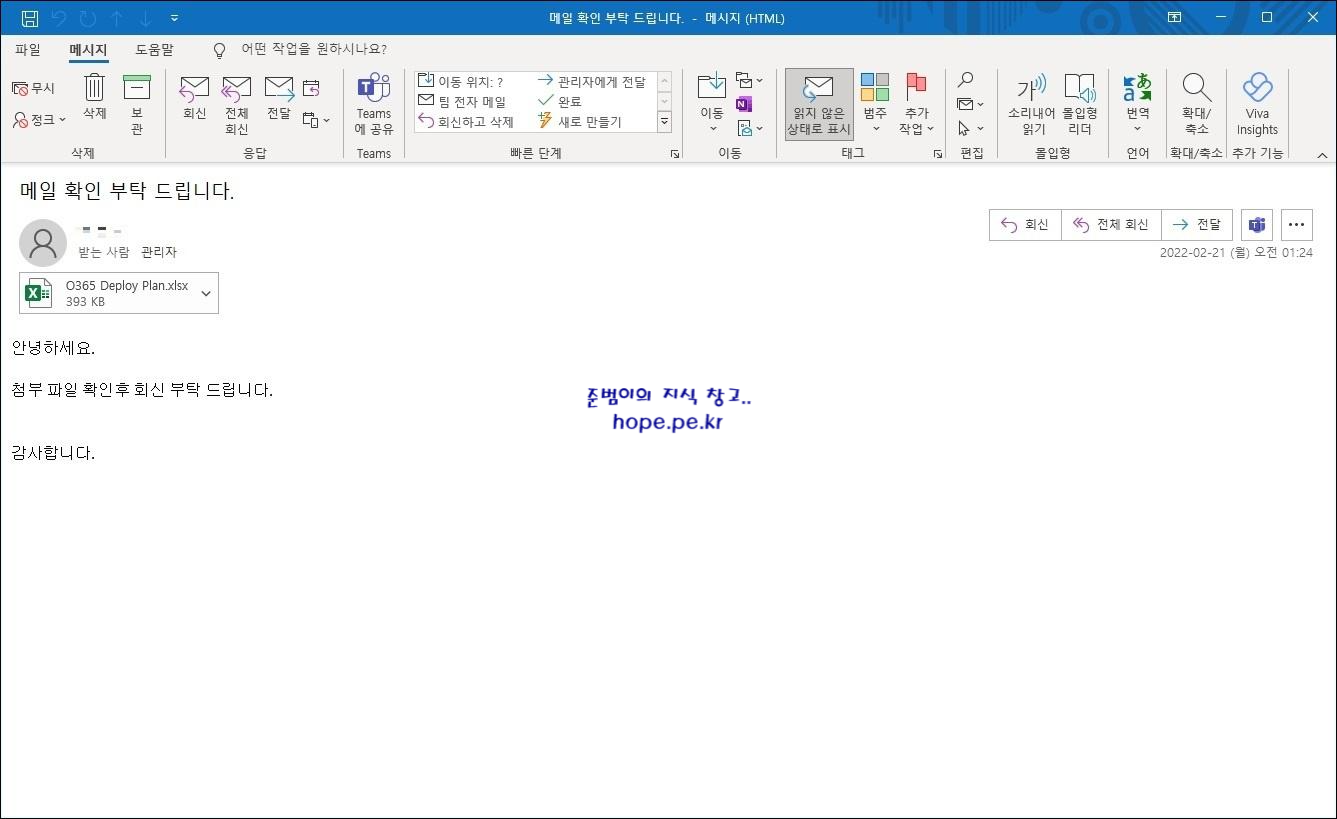 이번 포스팅에서는 "Outlook 규칙 - 특정인으로부터 메일 수신시 알림 및 중요도 표시" 방법에 대해 알아보겠습니다.
