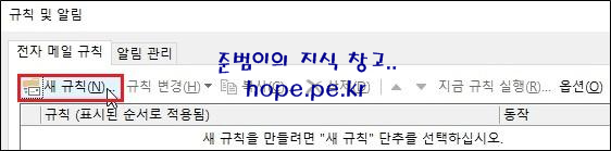 규칙 및 알림 창에서, '새 규칙' 을 클릭하면