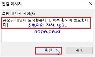 이제 규칙에서 지정한 특정인으로부터 메일을 수신하면 다음과 같이 '새 메일 알림' 창이 표시 됩니다.