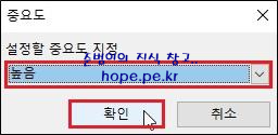 중요도 창에서, '설정할 중요도 지정 > 높음' 선택후 '확인' 을 클릭 합니다.