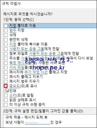 '2단계: 규칙 설명 편집 > 중요도' 를 클릭 합니다.
