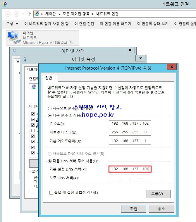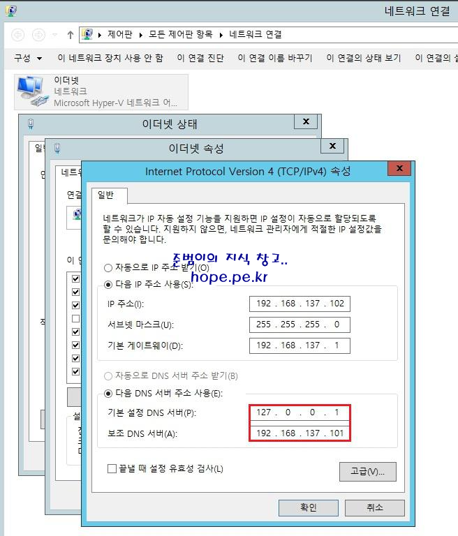 | Root Domain | hope.pe.kr | HopeDC1 | 192.168.137.101 | 127.0.0.1 |
