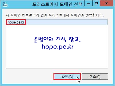 포리스트에서 도메인 선택 창에서, 'Root Domain' 클릭후 '확인' 을 클릭 합니다.