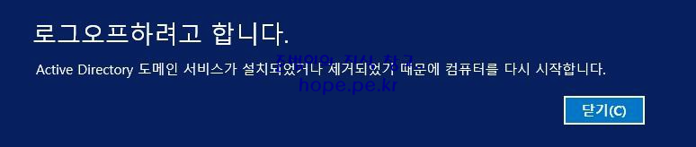 일정 시간 경과후 '로그오프하려고 합니다.' 화면이 발생하고 자동으로 서버가 재부팅 됩니다.