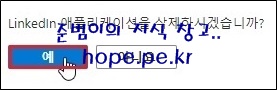LinkedIn 애플리케이션을 삭제하시겠습니까? 팝업창에서, '예' 를 클릭 합니다.