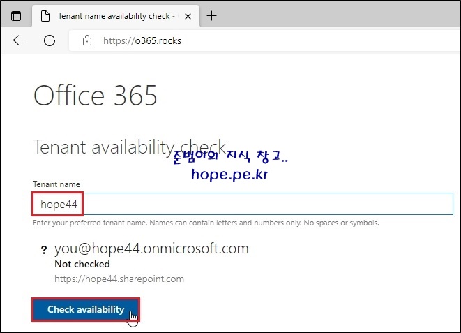 Office 365 테넌트 이름 사용 가능 여부 확인 방법
