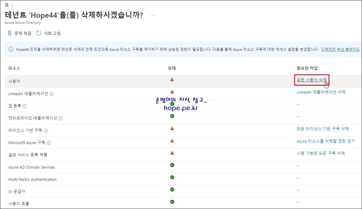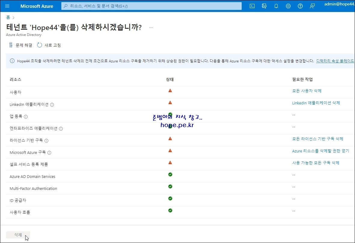 Azure AD 테넌트 삭제 - Azure Active Directory - Microsoft Entra