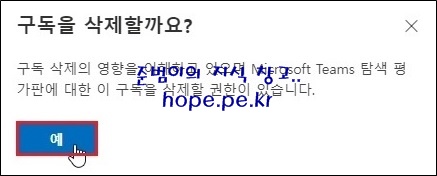 구독을 삭제할까요? 팝업창에서, '예' 를 클릭 합니다.