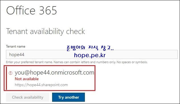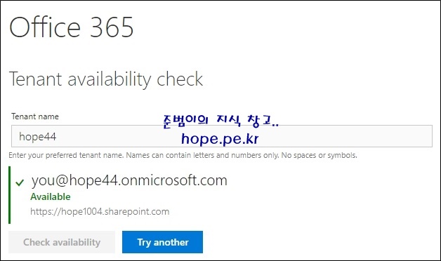 참고: Office 365 테넌트 이름 사용 가능 여부 확인 방법