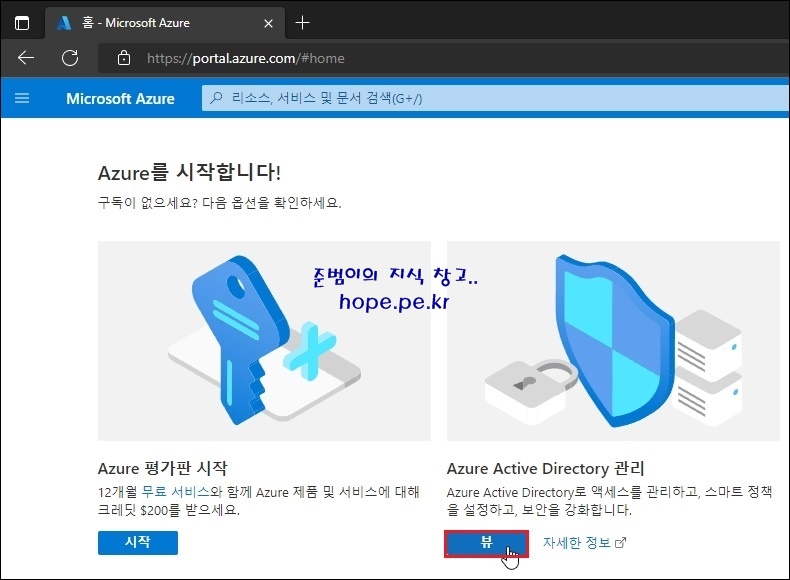 로그인 후 'Azure Active Directory 관리' 의 '뷰' 를 클릭 합니다.