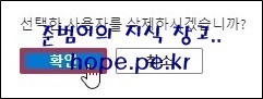 선택한 사용자를 삭제하시겠습니까? 팝업창에서, '확인' 을 클릭 합니다.